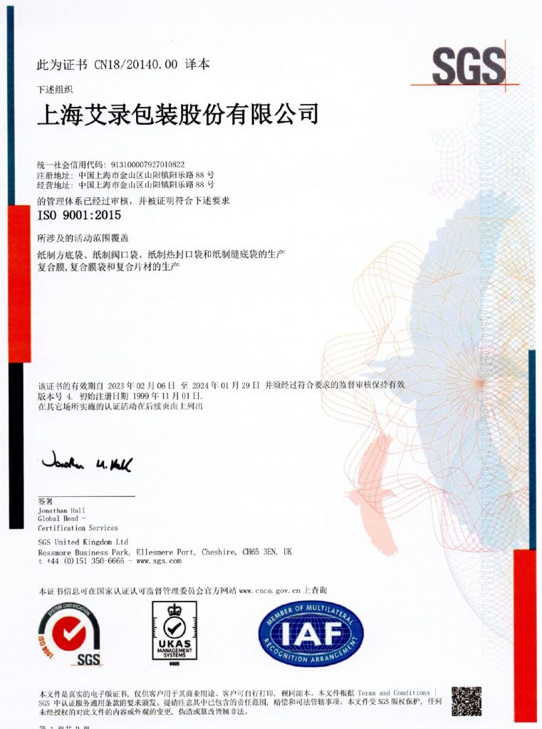 上海艾錄包裝股份有限公司(證券簡稱:上海艾錄 證券代碼:301062)成立于2006年,主要從事工業(yè)用紙包裝、塑料包裝及智能包裝系統(tǒng)的研發(fā)、設計、生產(chǎn)、銷售以及服務。經(jīng)過多年的持續(xù)發(fā)展,公司已由國內領先的工業(yè)用紙包裝公司,成長為一家工業(yè)與消費包裝產(chǎn)品皆備的軟體包裝一體化解決方案提供商,并通過智能化、柔性化、定制化的生產(chǎn)能力,為妙可藍多、蒙牛、光明、雀巢、菲仕蘭、 陶氏、巴斯夫、沈陽化工、佰利聯(lián)、德高、立邦、東方雨虹、美巢等國內外知名工業(yè)及消費類企業(yè)客戶提供包裝解決方案所需的相關產(chǎn)品。